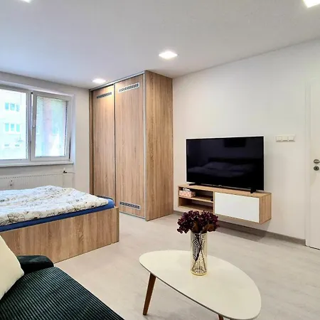 Een oven en een vaatwasser worden aangeboden in een ingerichte keuken. Alvinczyho bushalte is in de buurt van het gebouw.